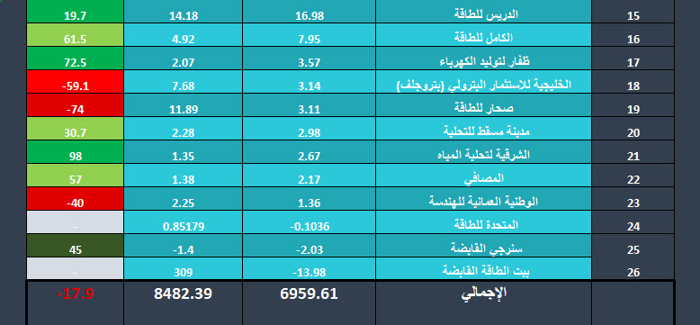 يُشار إلى أنه تم استبعاد دولتي قطر والبحرين من الإحصائية نظراً لعدم وجود قطاع مدرج بالبورصة ضمن قطاع الطاقة.